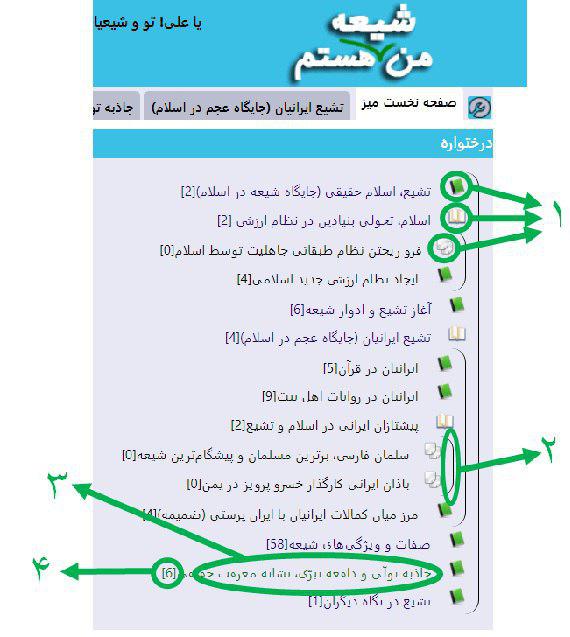 با کلیک کردن روی آیکن کتاب بسته (سبز رنگ) قلابی زیر شاخه مربوطه باز می‌شود و در داخل آن زیر مجموعه شاخه مربوطه نمایش داده می‌شود.