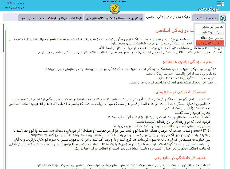 اما عملکرد گزینه سوم دقیقا بر عکس گزینه دوم است. یعنی با انتخاب «نمایش متن مقاله»، درختواره پنهان شده و تنها ستون متن مقاله نمایش داده می‌شود. (تصویر شماره 3)