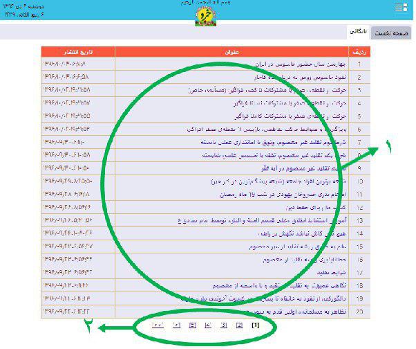 با کلیک کردن بر روی هر یک از شماره‌ها، صفحه مورد نظر نمایش داده خواهد شد.